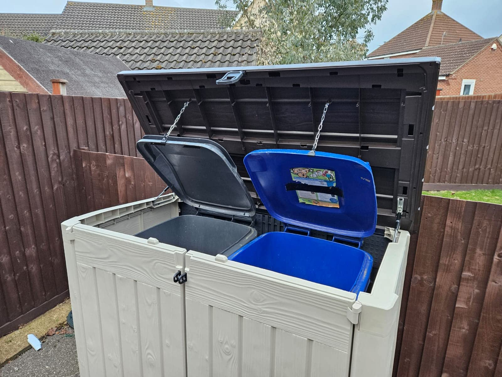 • Ideal outdoor storage solution for garden tools, equipment and x2 240 L wheelie bins