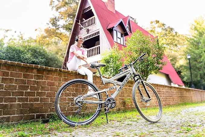 Licorne bike strong 2d premium mountain bike in 26, 27,5 and 29 inches, bicycle for boys, girls, women and men, front and rear brake, gear box, full stop