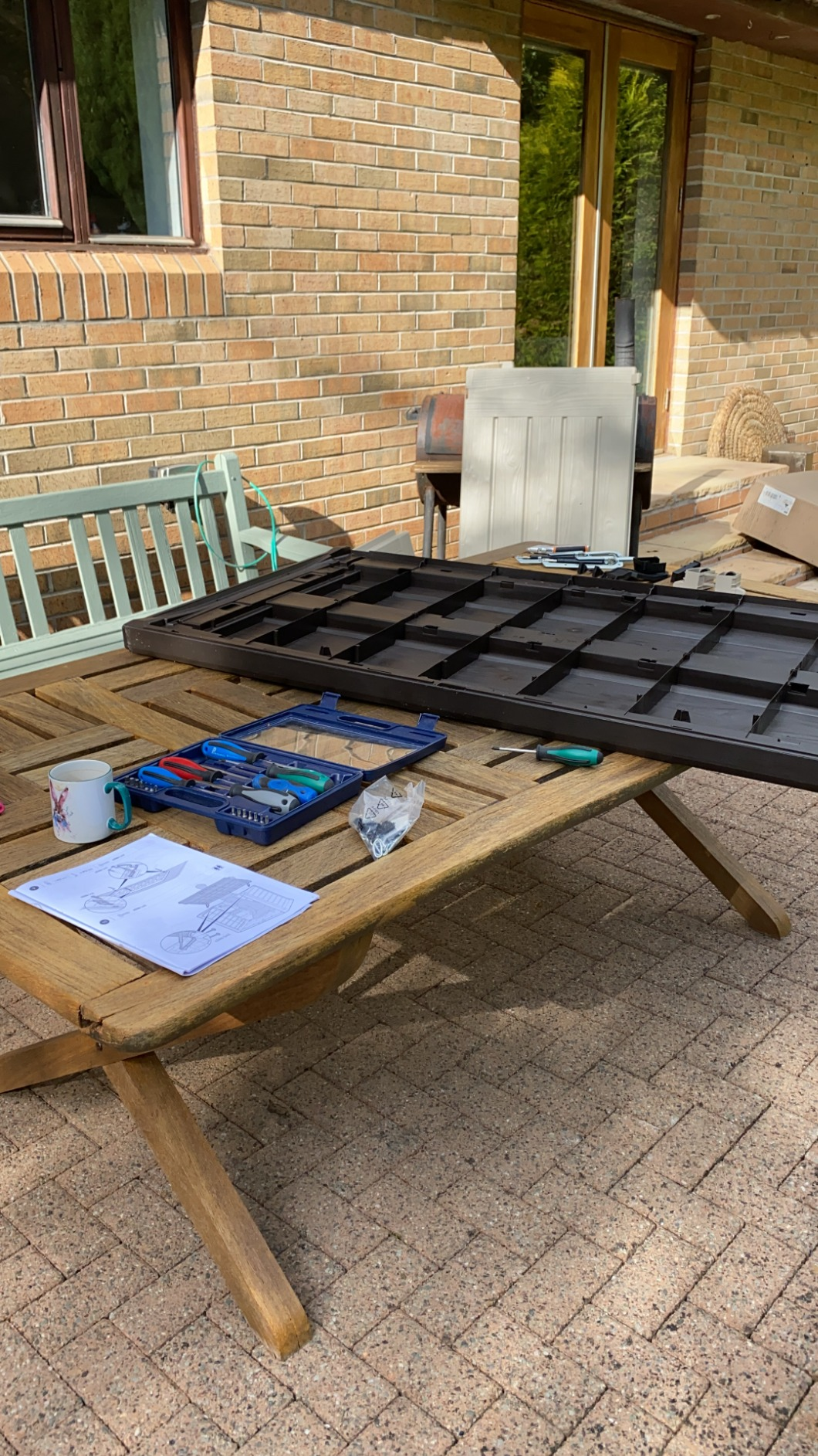 This arrived in good order and on time. Read the instructions and fairly simple but havia cordless driver helps. Easy to set up although the top back rail takes a bit of adjusting. It’s sturdy when assembled and looks good too neat and tidy. I will be putting wooden shelves inside to increase storage but for the money I would say it’s a good buy.