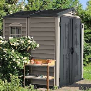 Brand Duramax Colour Adobe and Anthracite Material Plastic Item dimensions L x W x H 190 x 186.7 x 213 centimetres Top material type Alloy Steel, Plastic About this item