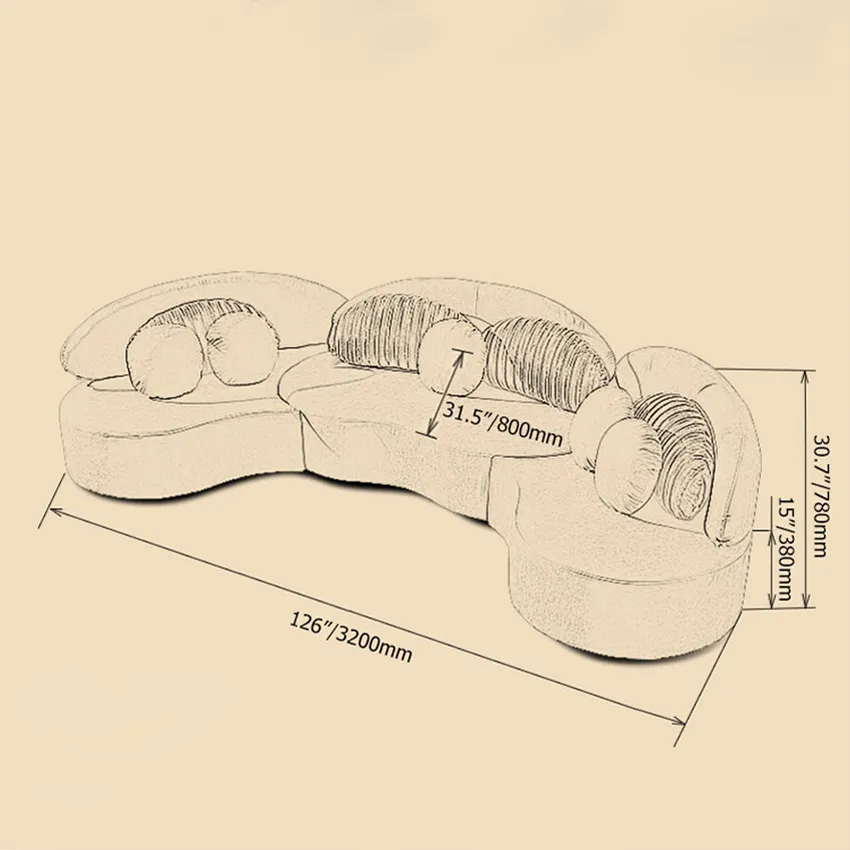 Curved Sectional Sofa Light Gray Velvet Upholstered 7 Seater Floor Sofa with Ottoman