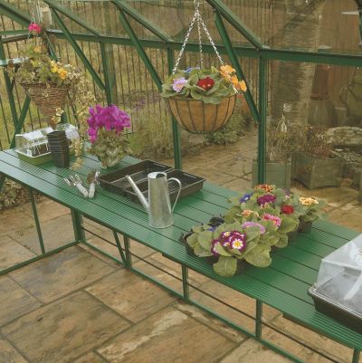 Narrower than the staging but otherwise the same this shelving can be positioned at any height and adds extra working area in your greenhouse.Staging and shelves are supplied in easy to assemble kit form and will not rust, rot or deteriorate in humid greenhouse conditions. Aluminium to match the greenhouse frame.