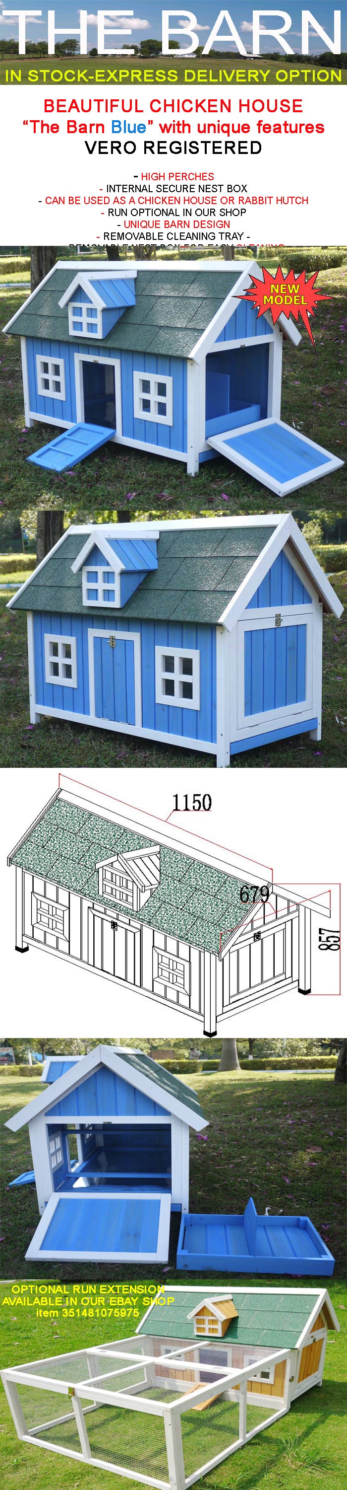 Modified Item:NoHouse/Coop Material:WoodCustom Bundle:Nodimensions:115cm x 68cm x 86cmNon-Domestic Product:NoType:House/CoopAssemble:Flat packedPoultry Species:rabbit, Chicken, Duck, Guinea Fowl, Pheasant, Pigeon, Spring Chicken, Quail