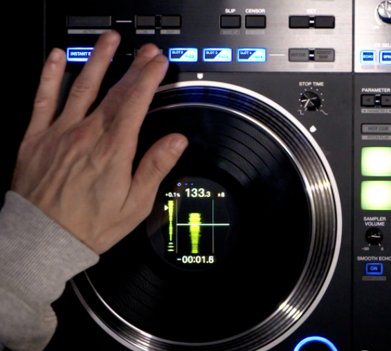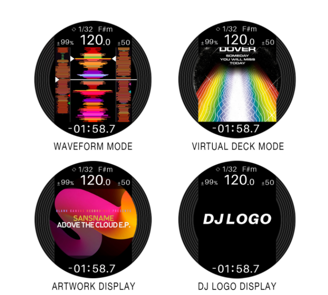 In the center of each jog wheel, a 3.5-inch LCD keeps important information at your fingertips so there’s far less need to switch your gaze between the decks and your laptop. Thanks to an omnidirectional viewing angle, you can see what’s being displayed from any angle, and you can turn off the digital marker that indicates the playback position whenever you want. You can also mark each jog wheel with the included stickers if you prefer this method to the digital marker.
