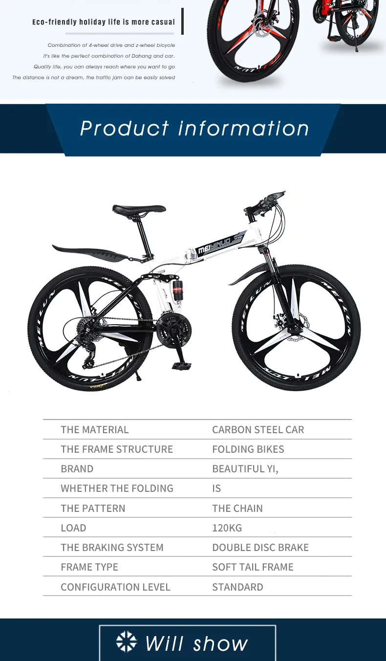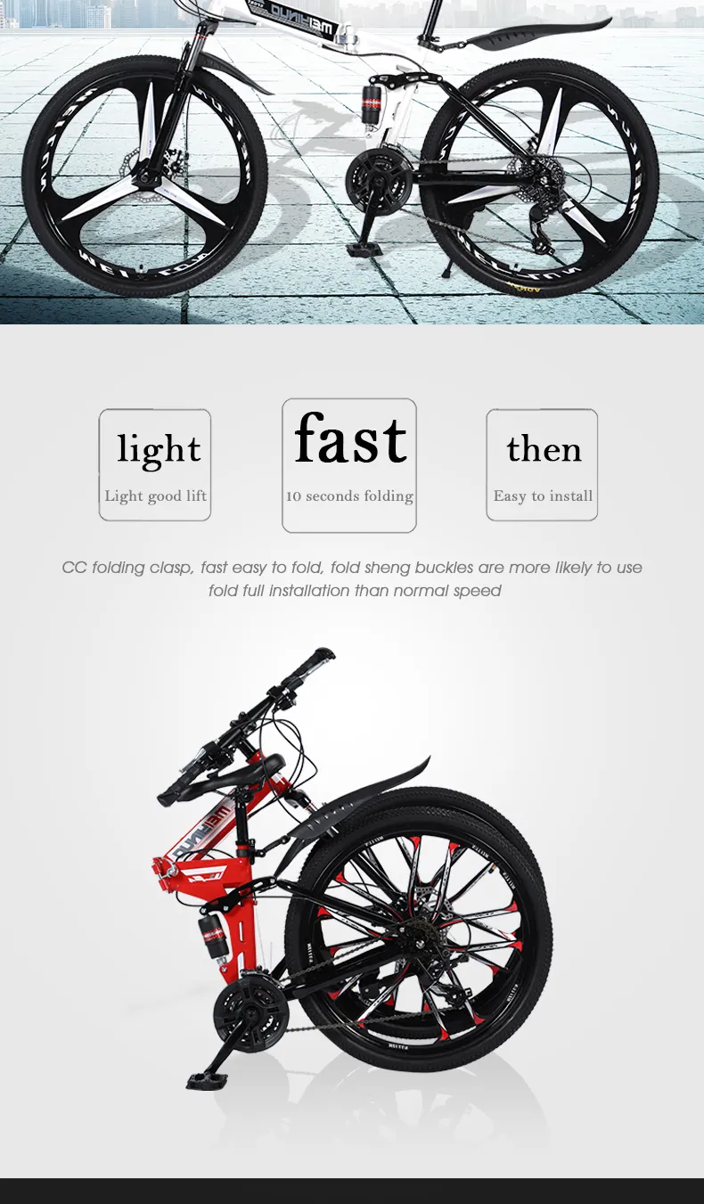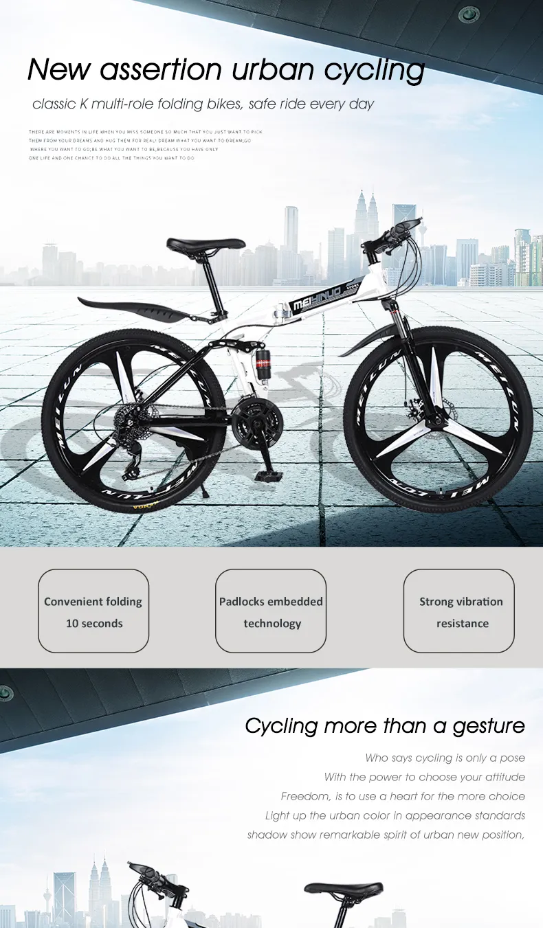 Mountain damping folding bicycle 26 inch disc brake 21 speed folding bicycle adult bicycle mountain bike snowmobile free shippin